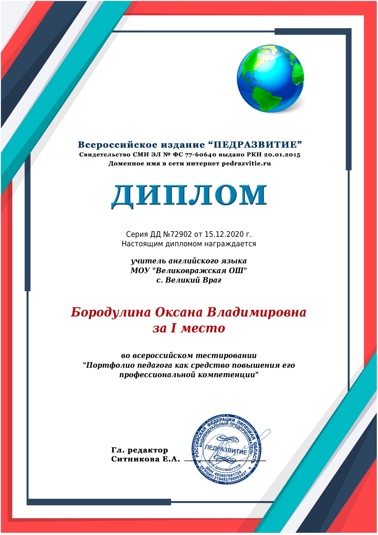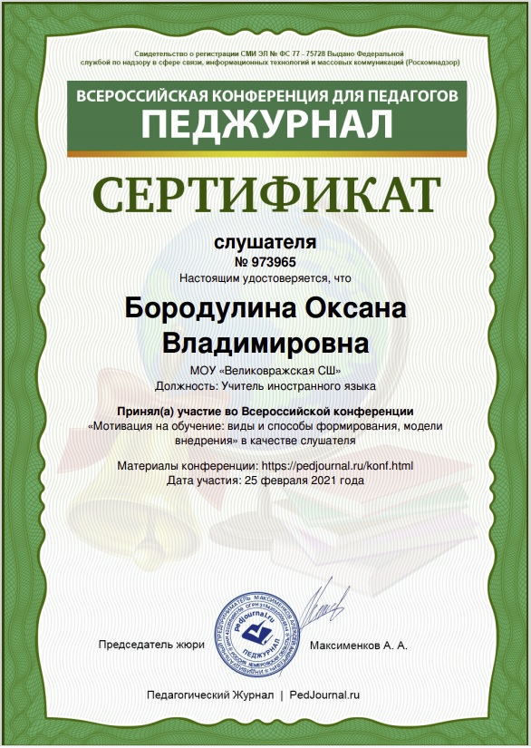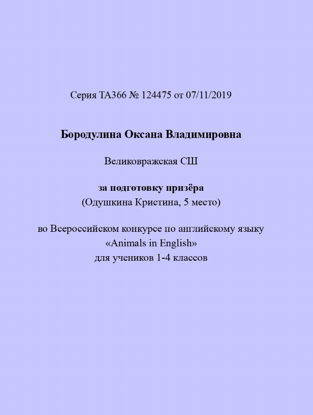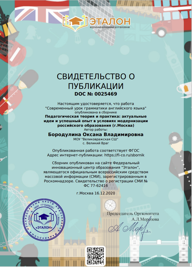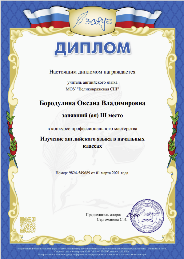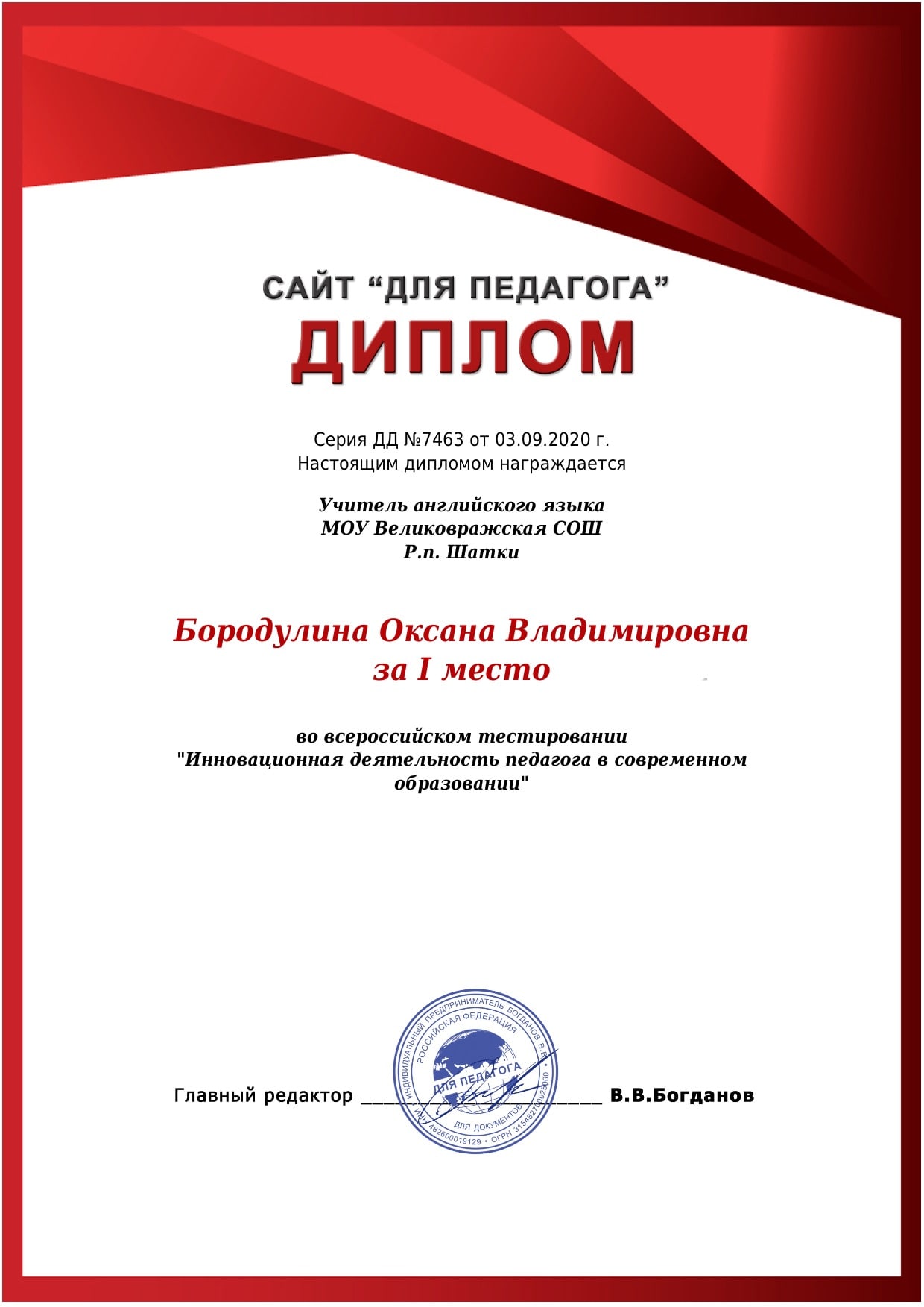 Персональный сайт учителя английского языка Бородулиной Оксаны Владимировны